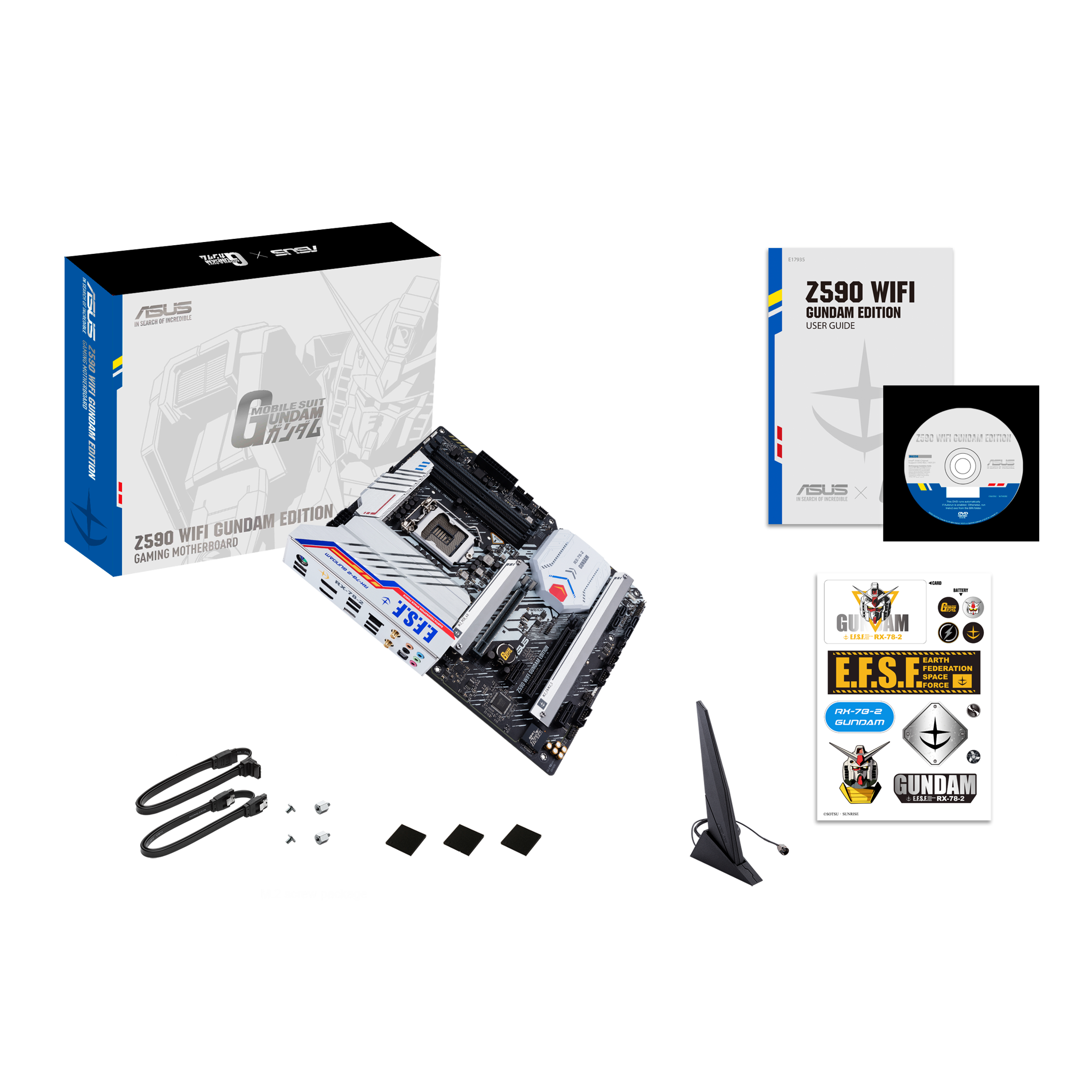 Phụ kiện | Cables 2 x SATA 6Gb/s cables Miscellaneous 1 x ASUS Wi-Fi moving antenna 2 x M.2 Rubber Packages 1 x M.2 SSD screw package 1 x GUNDAM DIY sticker Installation Media 1 x Support DVD Documentation 1 x User manual |