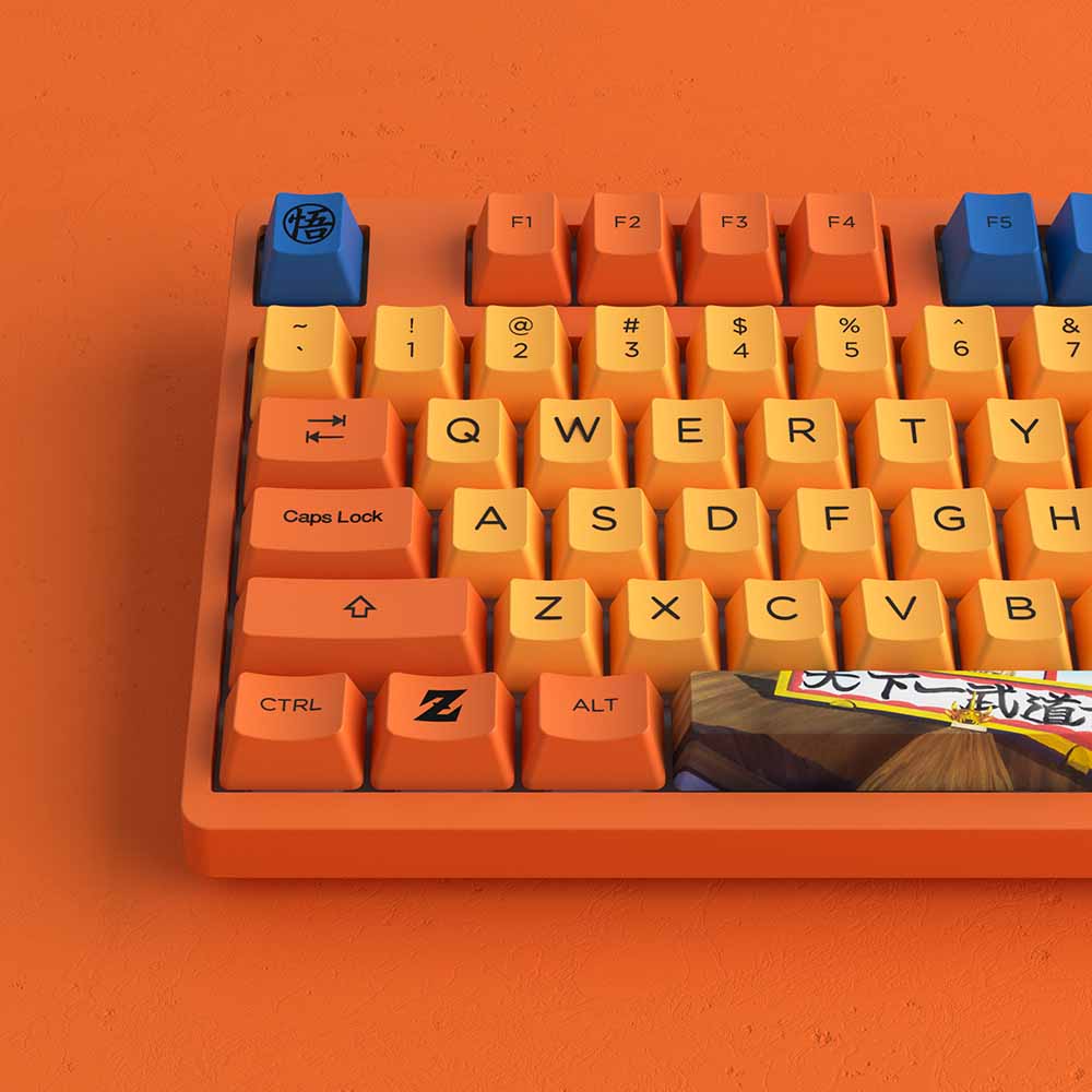 - Keycap PBT Dye-Subbed, OEM profile theo chủ đề nhân vật GOKU bắt mắt và đã quá quen thuộc với người dùng tại Việt Nam