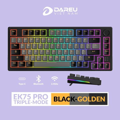 - Bàn phím cơ DareU EK75 Pro Triple Mode Black Golden DareU Firefly Switch
