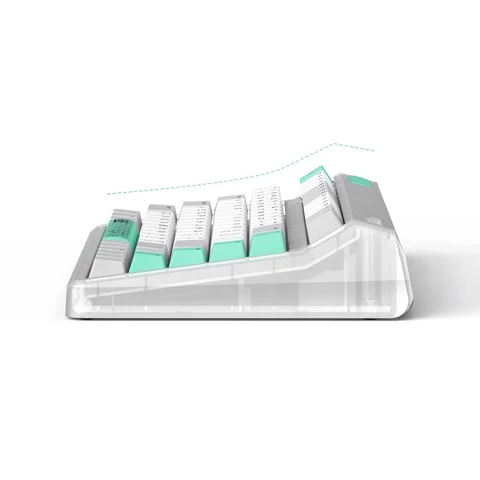 Thay vì sử dụng phần đế nâng có thể điều chỉnh thì bàn phím cơ IQUNIX OG80 Wormhole lựa chọn thiết kế case với độ nghiêng sẵn được tính toán khoa học. Khi gõ phím bạn sẽ dễ dàng quan sát các phím chức năng đồng thời thao tác nhấn chính xác hơn nhờ vào độ dốc nghiêng của nó.