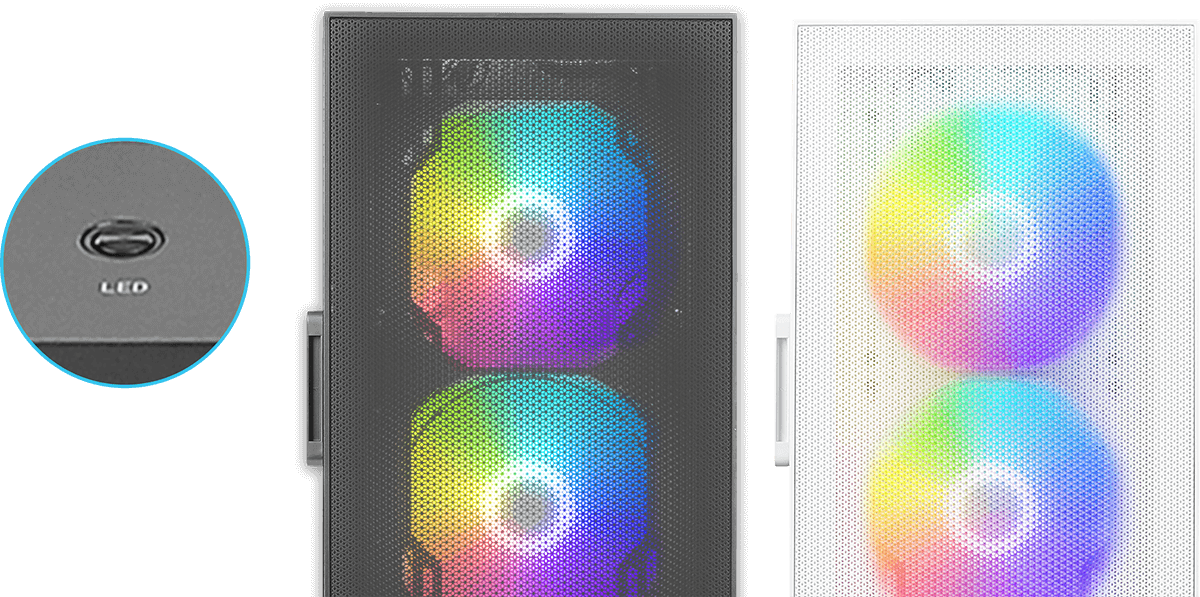 Just a single press to change the front panel’s ARGB lighting effect at will
