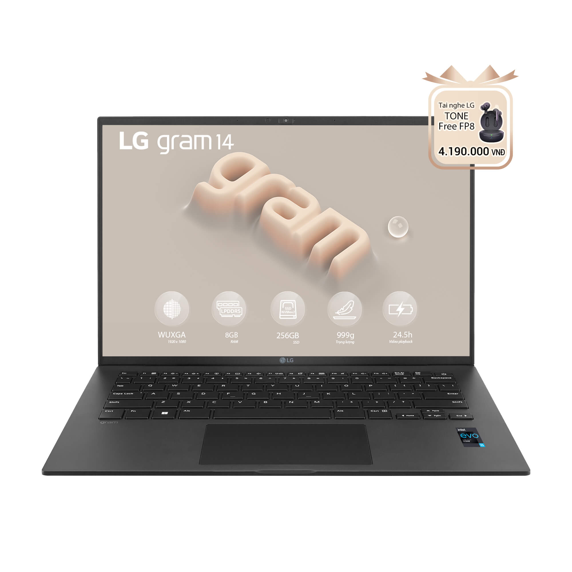 Laptop LG Gram 2023 14ZD90R-G.AX52A5 i5-1340P Gen13 | 8GB | 256GB SSD (Dual slot) | Intel Iris Xe | 14 inch 1920x1200 99% DCI-P3 350 nits | FREE OS | 999gram | Pin 72Wh lên đến 24.5 giờ (Video Play back) | USB 4 Gen3x2 Type C x2 (PD, DP, Thunderbolt 4), HDMI x1, USB 3.2 Gen2x1 | Loa Stereo với Dolby Atmos | BH 12 tháng | Đen