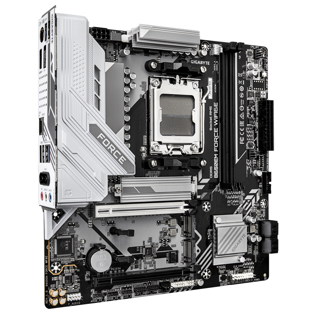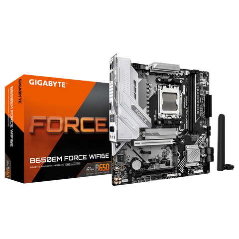 Mainboard Gigabyte B650EM FORCE WIFI6E là bo mạch chủ Micro-ATX (mATX) dùng chipset AMD B650, hỗ trợ CPU Ryzen™ 7000 / 8000 / 9000 series mới nhất của AMD qua chuẩn Socket AM5 — phù hợp cho build PC đa năng từ gaming đến đồ họa, sản xuất nội dung.