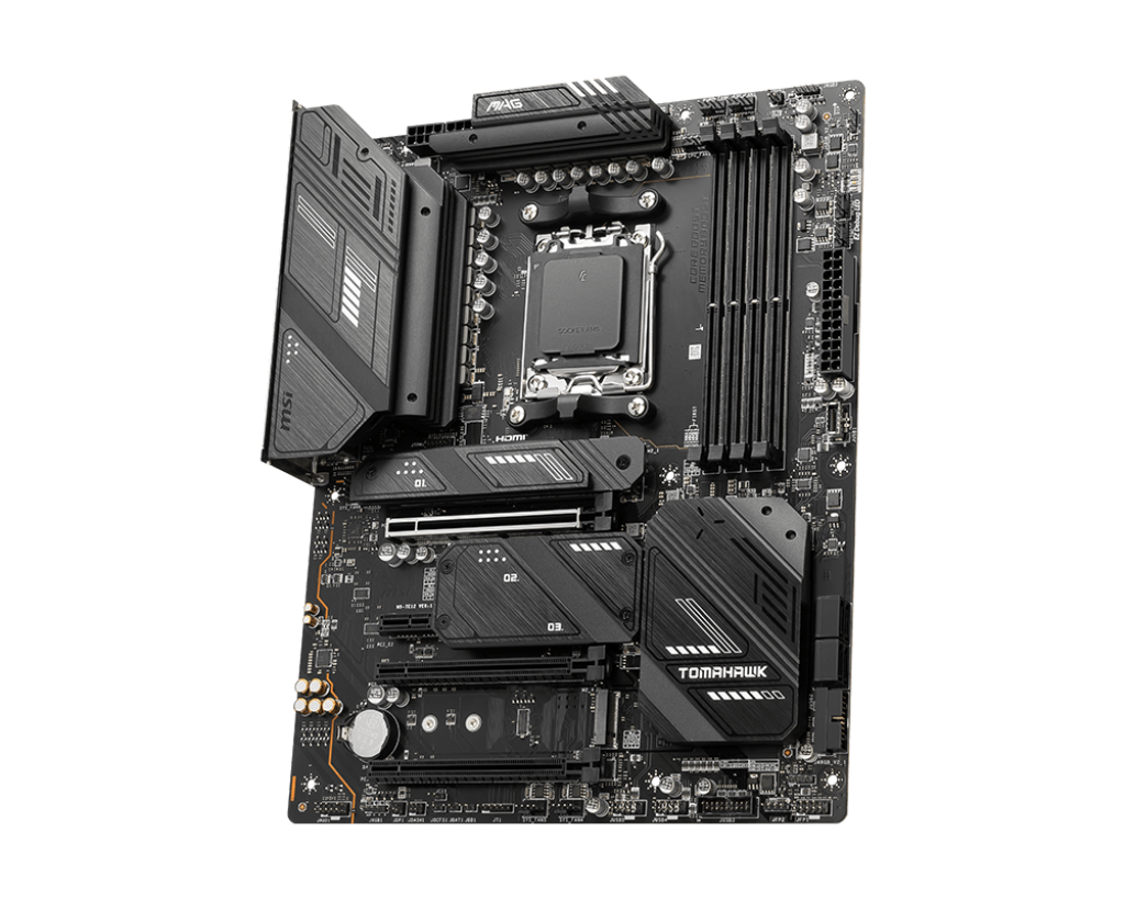 | SLOT | 3x khe cắm PCI-E x16 • Hỗ trợ x16/x4/x2 (Dành cho bộ xử lý dòng Ryzen™ 7000) • Hỗ trợ x8/x4/x2 (Dành cho bộ xử lý Ryzen™ 7 8700G và Ryzen™ 5 8600G) • Hỗ trợ x4/x2/x2 (Dành cho bộ xử lý Ryzen™ 8500G) 1x khe cắm PCI-E x1 PCI_E1 Gen PCIe 5.0 hỗ trợ lên tới x16 (Từ CPU) PCI_E2 Gen PCIe 3.0 hỗ trợ tối đa x1 (Từ Chipset) PCI_E3 Gen PCIe 4.0 hỗ trợ tối đa x4 (Từ CPU) PCI_E4 Gen PCIe 4.0 hỗ trợ tối đa x2 (Từ Chipset) *PCI_E4 & M2_4 chia sẻ băng thông. M2_4 sẽ chạy ở tốc độ x2 khi lắp thiết bị vào khe PCI_E4. |